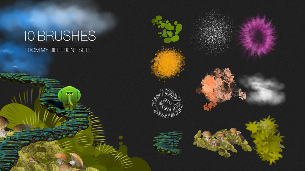 - 10 various brushes from my sets (all U can get here on Gumroad)